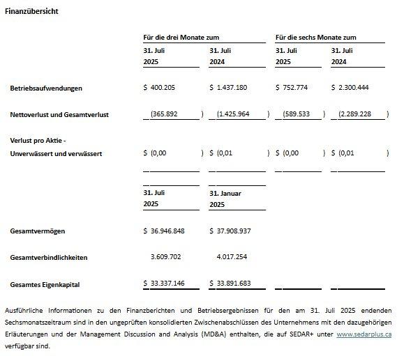 Clean Air Metals legt Zwischenabschluss für den am 31. Juli 2025 endenden Sechsmonatszeitraum vor