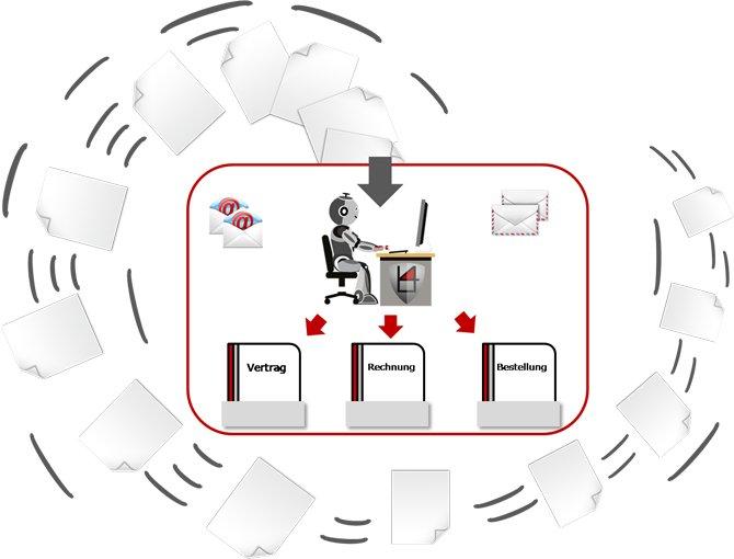 • Dokumentenlenkung: Bots erkennen den Dokumententyp (z. B. Rechnung, Bestellung, Vertrag) und leiten die Daten automatisch an die zuständige Abteilung weiter.