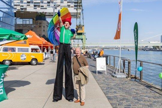 Ein besonderes Highlight ist der Auftritt der Kölner Band „Cat Ballou“, die als Botschafter des Fests mit dabei sind. Der Stand der DEVK befindet sich direkt unter dem mittleren Kranhaus: Im Schatten der markanten Hochhäuser geht es für mutige Kinder in einen Klettergarten. Wer lieber mit den Füßen auf dem Boden bleibt, kann gemeinsam mit Aktionskünstler HA Schult eigene Kunstwerke malen, die anschließend die Bauzäune der Großbaustelle an der DEVK Zentrale in Riehl schmücken. So verewigen sich kleine Künstlerinnen und Künstler als Teil der längsten Glücks-Botschaft der Stadt. Dazu gibt es auch wieder das klassische Kinderschminken bei der DEVK und Clown Olli begeistert mit seinen Tricks und Künsten.