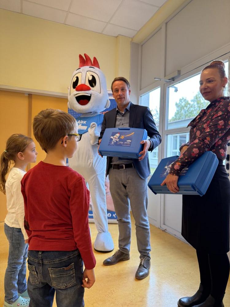 Über die Jahre haben schon Hunderte von Erstklässlern ihre Vorstellungen von Strom, Wasser, Wärme, Erdgas, Geothermie oder Glasfaserinternet zu Papier gebracht und damit gezeigt, wie vielfältig die Stadtwerke das tägliche Leben bereichern. Zum 20-jährigen Jubiläum dürfen sich die kleinen Künstlerinnen und Künstler aus 34 Klassen erneut über den Besuch des Stadtwerke-Maskottchens Alex freuen, das zum Schuljahresstart die blauen Malkoffer verteilt. Darin finden sich Stifte, Pinsel, Tuschkästen und viele Anregungen für kreative Ideen rund um das Thema Energie.