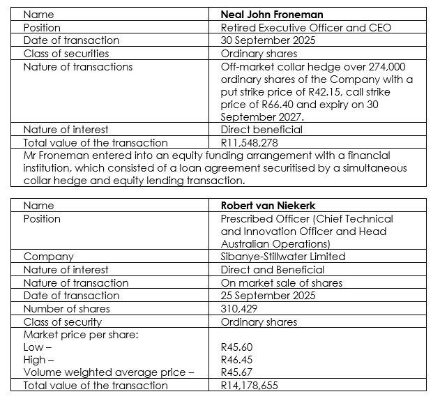 Sibanye-Stillwater, (Tickers JSE: SSW and NYSE: SBSW) (- https://www.commodity-tv.com/play/sibanye-stillwater-well-on-track-to-become-cash-flow-positive-again-restructuring-bears-fruits/ -), in compliance with paragraphs 3.63 to 3.74 of the JSE Limited Listings Requirements, discloses the following: