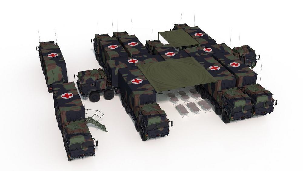 Jede der Sanitätseinrichtungen besteht aus insgesamt elf Fahrzeugen mit dazugehörigen Multifunktionscontainern. Der Vertrag gilt bis 2040 und ermöglicht die Bestellung weiterer Systeme.
