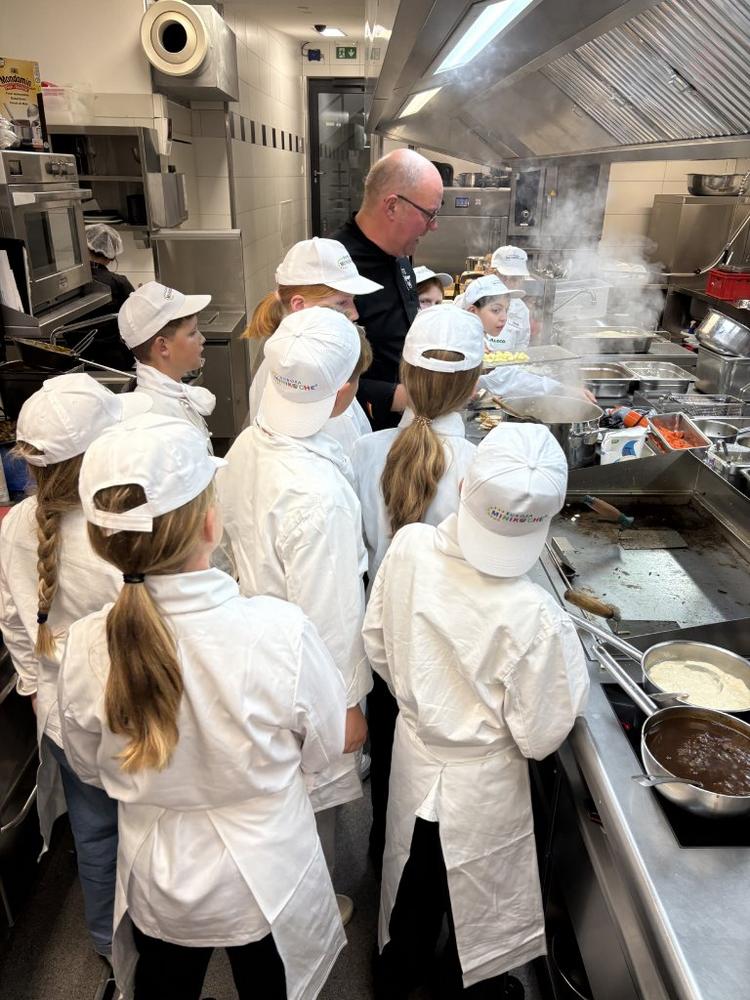 Zum Auftakt stand – wie immer – eine Hygieneschulung mit Manfred Schmitz auf dem Programm. Danach ging es direkt in die Küche des Zeltinger Hofs, wo Markus Reis und Christiane Reis-Keller die Kinder herzlich begrüßten. Gemeinsam bereiteten sie eine leckere Kürbissuppe sowie eine herbstliche Kürbis-Apfel-Marmelade zu.