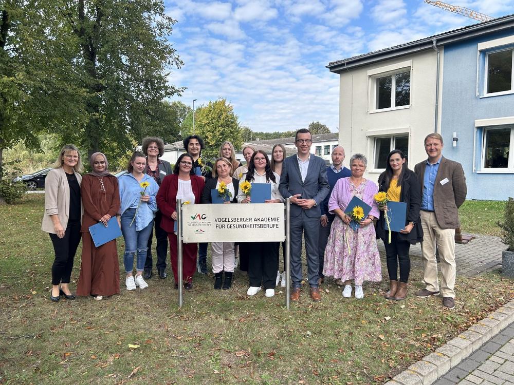 Großer Tag an der Vogelsberger Akademie für Gesundheitsberufe: Gleich drei Kurse werden an diesem Tag verabschiedet, am Vormittag nehmen acht examinierte Pflegefachkräfte im Rahmen einer Feierstunde ihre Zeugnisse entgegen, am Nachmittag sind es 21 Altenpflege- und die Krankenpflegehelferinnen, die nach einjähriger Ausbildung feierlich verabschiedet werden.