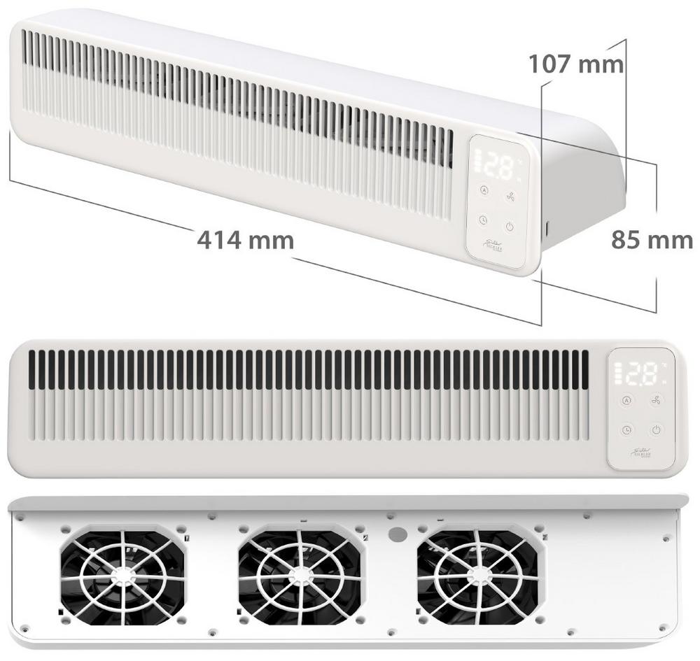 Mit einer Breite von nur 41,4 cm findet der Ventilator auch auf schmaleren Heizkörpern Platz. Das dezente, schlanke Design fügt sich unauffällig in verschiedene Wohnumgebungen ein.
