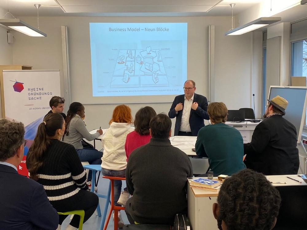 Anschließend boten Miniworkshops zur Business Model Canvas praktische Einblicke: Unter Anleitung von Prof. Michael Graef und Marcel Mayer (Startup-Center Hochschule Worms) lernten die Gäste, ihre Geschäftsmodelle anschaulich zu visualisieren und auf Marktfähigkeit zu prüfen. Dies ist ein wichtiger Schritt für jede erfolgreiche Gründung.