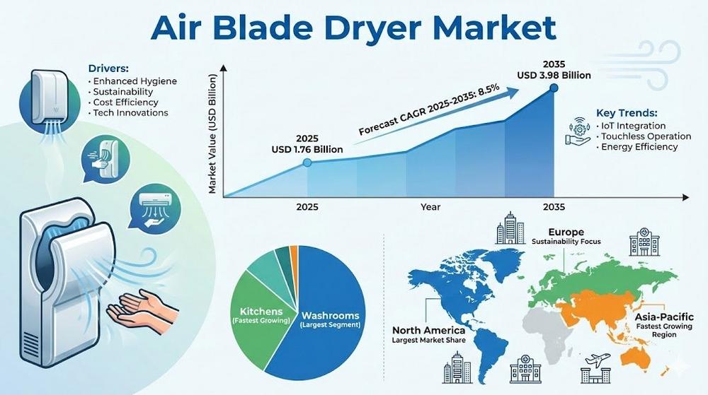Global Air Blade Dryer Market to Nearly Double by 2035, Driven by Hygiene, Sustainability, and Smart Tech