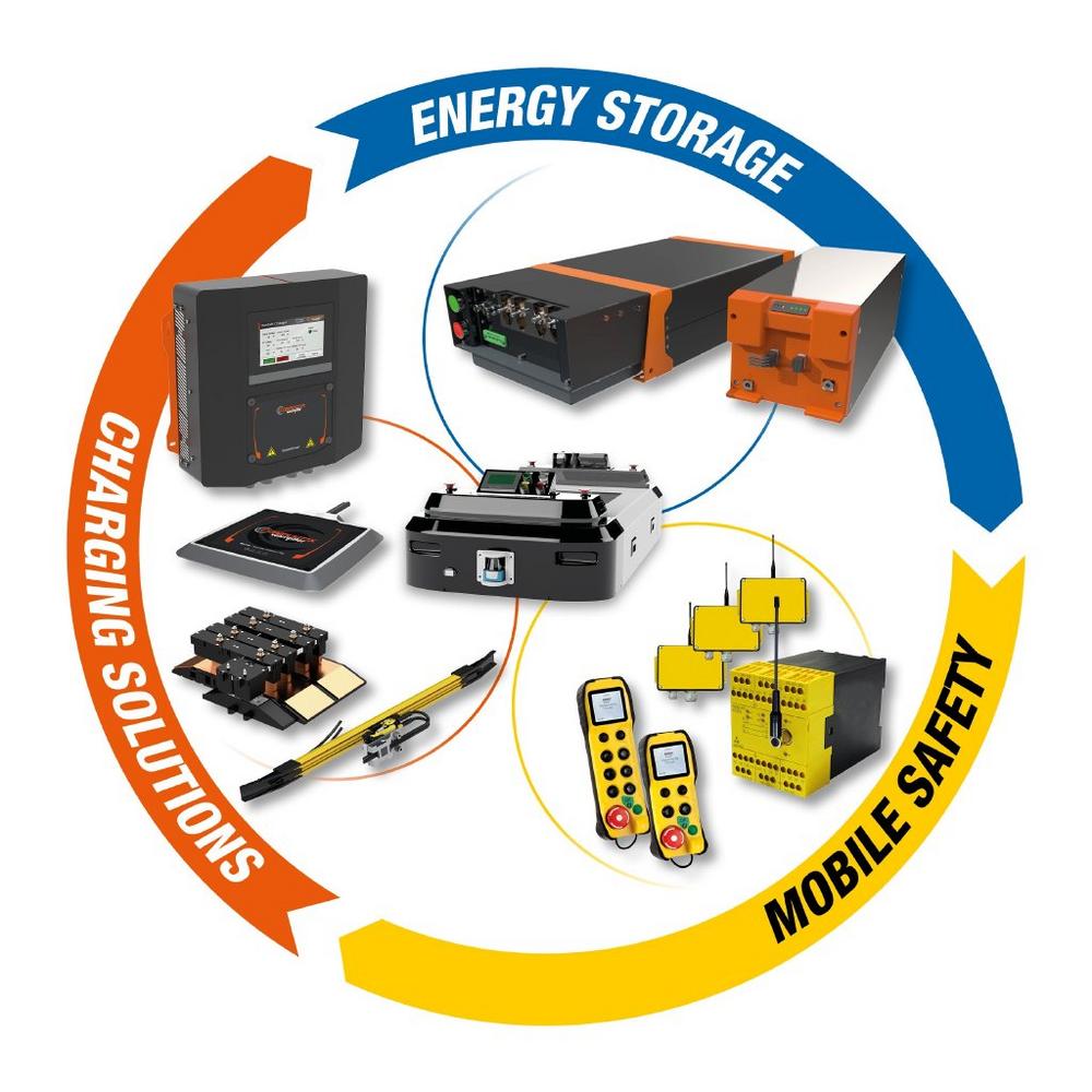 Gezeigt werden induktive und konduktive Ladesysteme für „In-Process-Charging“, modulare Energiespeicherlösungen sowie sichere Kommunikationslösungen. Ein Highlight auf dem Messestand wird die Live-Demonstration des WirelessChargers 3.0 sein, ergänzt durch ideal auf die Fahrzeuge und die Ladelösungen abgestimmte Batteriesysteme. Diese sind auf hohe Zyklenfestigkeit und schnelle Ladeprozesse ausgelegt. Ebenfalls ein wichtiges Detail beim Betrieb von AGV-Flotten ist das Sicherheitsfunk-System RadioSafe für mobile Sicherheit.