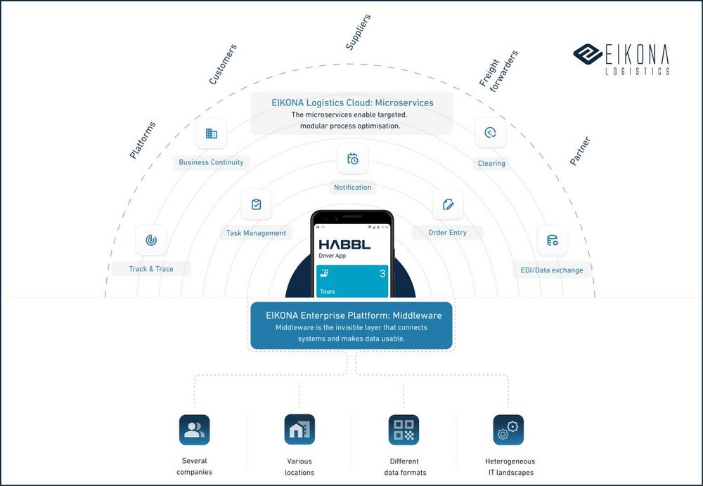 Since 2001, EIKONA Logistics has been developing solutions for logistics service providers, commercial and industrial companies that connect people and businesses. Enterprise platforms for freight forwarding and logistics networks as well as corporations, and the EIKONA Logistics Cloud with modules for step-by-step support of logistics processes: from order entry (EIKONA Order Management) to shipment tracking (EIKONA Track and Trace) and notification (EIKONA Notification) to visual delivery information (EIKONA Map and ETA), these modules connect all parties involved to supply chains that function simply and efficiently. The EIKONA Logistics Cloud currently comprises 18 innovative and intelligent modules that can be combined and scaled flexibly – developed with technological competence and industry expertise.