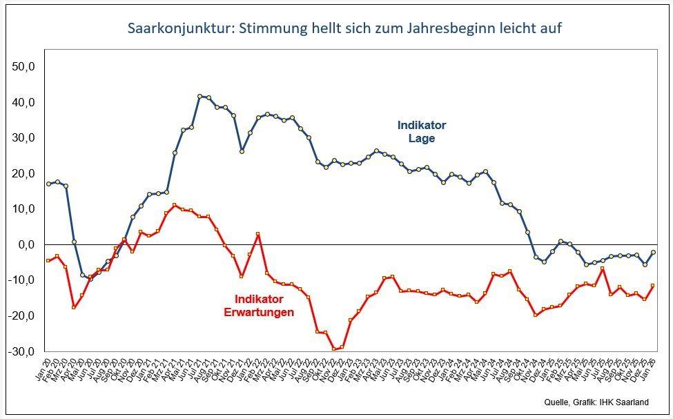 Saarkonjunktur: Stimmung hellt sich zum Jahresbeginn leicht auf