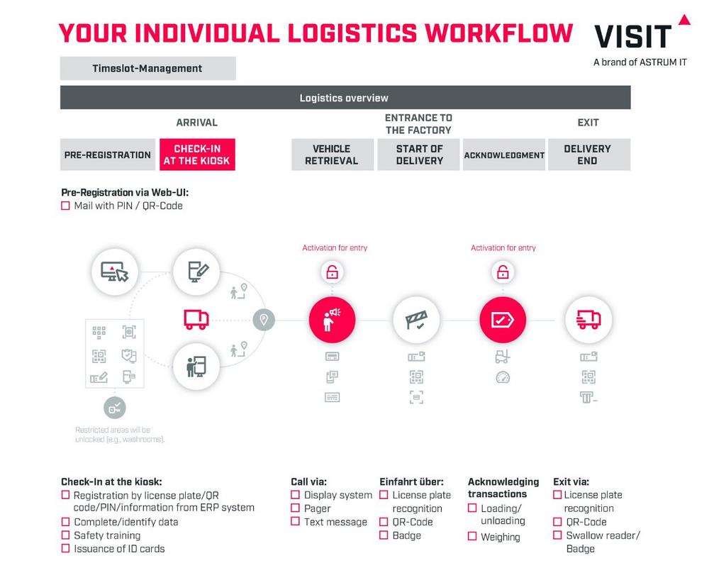 At LogiMAT 2026, ASTRUM IT will present VISIT, an intelligent platform solution for managing external personnel. In addition to visitor and external company management, the yard management area is a central component – completely digital, secure, and flexibly expandable. Companies can use it to efficiently control their delivery traffic throughout the entire process – from pre-registration to departure.