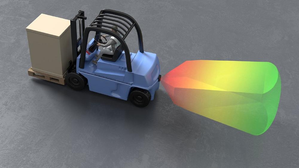 Thanks to state-of-the-art radar technology, it reliably monitors the rear area of industrial trucks and protects people and objects from collisions.