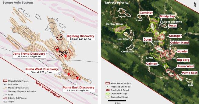 Miata Metals Corp. (CSE: MMET) ist ein kanadisches Mineralexplorationsunternehmen, das an der Canadian Securities Exchange sowie an den Börsen OTCQB (OTCQB: MMETF) und Frankfurt (FSE: 8NQ) notiert ist. Das Unternehmen konzentriert sich auf den Erwerb, die Exploration und die Erschließung von Mineralliegenschaften. Das Unternehmen hält eine 70-prozentige Beteiligung am ~215 km2 großen Goldprojekt Sela Creek mit einer Option auf den Erwerb einer 100-prozentigen Beteiligung an dem Projekt sowie eine 70-prozentige wirtschaftliche Beteiligung am Goldprojekt Nassau mit einer Option auf den Erwerb einer 100-prozentigen Beteiligung. Beide Explorationsliegenschaften befinden sich im Greenstone Belt von Suriname.