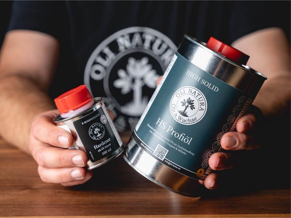 Ein Auftrag. 100 Prozent Festkörper. HS Profiöl von OLI-NATURA.