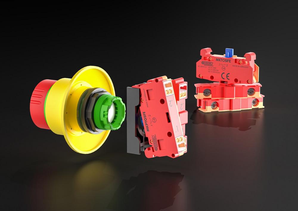 Die neuen Modelle decken unterschiedliche Anschlussarten ab: Der MKTOSFE mit Schraubanschluss ermöglicht eine klassische Verdrahtung, während der MKPTOSFE mit Push-In-Anschluss eine schnelle, werkzeuglose Installation erlaubt – ideal für zeitsparende Montageprozesse. Beide Varianten kombinieren einen Öffner mit Zwangsöffnung und einen Schließer, der als Überwachungskontakt für die Störfallabschaltung dient. Sie lassen sich über den Halterahmen MKHR_3 direkt am Not-Halt-Schalter montieren und mit weiteren Öffner- und Schließer-Modulen kombinieren.