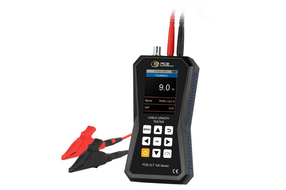 In modern measurement technology, Time Domain Reflectometry (TDR) has established itself as the gold standard for this task. This principle is based on sending an electrical pulse into the cable, which is reflected at the end of the line or at a fault location. By measuring the time interval between transmission and reception of the echo, the exact length can be calculated based on the material-specific Nominal Velocity of Propagation (NVP). A highly efficient tool for this application is the PCE-CLT 10 cable length meter. It is specifically designed to measure both cables already in place and those still on the reel with high precision.