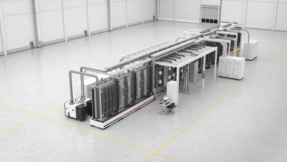 In its base configuration, VICA900 Mid Volume, the system targets an annual output of 4.6 to 6.4 million bipolar plates and focuses on coatings for PEM fuel cell applications. It can be extended with additional PVD process sources to accommodate further applications, such as double-sided precious metal coating for PEM electrolyzer components. By further upgrading the machine configuration, the throughput can be significantly increased, achieving up to 10 million coated bipolar plates per year in the VICA900 High Volume setup.
