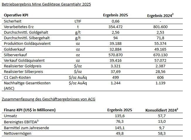 „2025 war für ACG ein Jahr starker Umsetzung mit gleichbleibender operativer Leistung, kontinuierlicher Optimierung im gesamten Unternehmen und robuster finanzieller Performance. Eine disziplinierte, sicherheitsorientierte Betriebskultur und ein anhaltender Fokus auf Kostenkontrolle bildeten die Grundlage für starke Margen und eine hohe Cash-Generierung und ermöglichten es uns gleichzeitig, den Ausbau der Kupfersulfid-Produktion in der Mine Gediktepe in der Türkei termingerecht und im Rahmen des Budgets voranzutreiben.