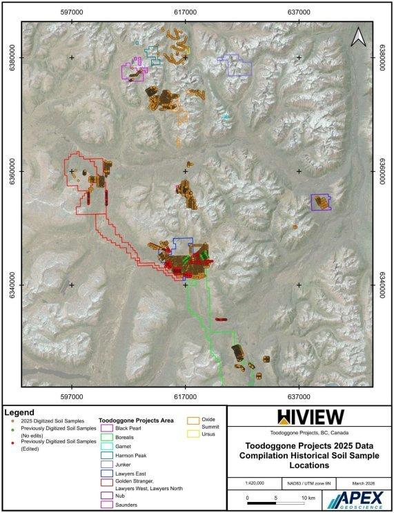 Die Zusammenstellung dieses Data Rooms stellt einen bedeutenden Meilenstein für Hi-View Resources dar und spiegelt die Tiefe und Qualität der historischen Explorationsarbeiten wider, die im gesamten Toodoggone-Distrikt durchgeführt wurden. Mit über 10.000 digitalisierten Proben, 60 georeferenzierten Bohrlöchern und 58 Bewertungsberichten, die über mehrere Projektgebiete hinweg zusammengestellt wurden, ist das Unternehmen der Ansicht, dass dieser Datensatz eine überzeugende Grundlage für die Weiterentwicklung seines Portfolios in Richtung der nächsten Explorationsphase bietet. Hi-View ist weiterhin bestrebt, das volle Potenzial seiner Toodoggone-Assets auszuschöpfen, und begrüßt den Dialog mit qualifizierten Partnern und Investoren, die seine Vision für den Distrikt teilen.