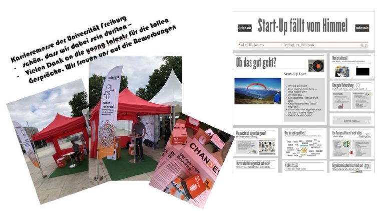 Die adensio war Aussteller und Referent beim Karrieretag 2018 der Universtität Freiburg. Sowohl im Vortrag zum Thema StartUp als auch auf der Messefläche in einer tollen Atmosphäre, dem Platz der alten Synagoge in Freiburg, konnten wir tolle Gespräch führen so Jörg Rietsch. Nach Aussage von Jörg Rietsch, Geschäftsführer der adensio GmbH war der Tag nicht […]