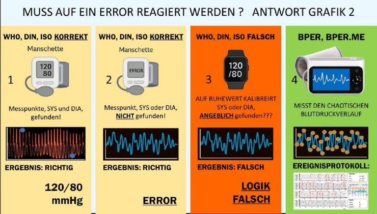Blutdruckmessgeräte nach WHO-, DIN- und ISO-Standard zeigen einen ERROR, wenn keine plausiblen Messpunkte für Systole oder Diastole gefunden werden können. Das ist kein Defekt, sondern ein korrektes Sicherheitsmerkmal: Das Gerät verweigert die Anzeige, wenn die Datenlage unplausibel ist – etwa bei Arrhythmien, chaotischen Druckverläufen oder instabilen Pulsdruckwellen. Es schützt so Nutzer und Diagnose vor falschen […]