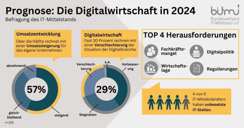• Großteil der IT-Mittelständler rechnet mit Umsatzwachstum • Verhaltene Prognose für die deutsche IT-Branche • Größte Herausforderung bleibt der Fachkräftemangel, dicht gefolgt von Inflation, Wirtschaftslage sowie der geringen politischen Priorisierung der digitalen Transformation • KI wird auch für 2024 als größter Digital-Trend prognostiziert. Die Jahresprognose des Bundesverband IT-Mittelstand e.V. (BITMi) zeigt: Der Großteil der […]