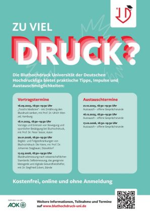 Welche lebenswichtigen Aufgaben übernehmen unsere Nieren – und was passiert, wenn sie aus dem Takt geraten? Welche Auswirkungen hat eine Nierenkrankheit auf unsere Gesundheit? Warum können Nierenerkrankungen und Bluthochdruck sich gegenseitig verstärken? Diese Fragen stehen am 20. Januar 2026 im Mittelpunkt eines kostenfreien Online-Vortrags der Bluthochdruck Universität – einem digitalen Angebot der Deutschen Hochdruckliga e.V. […]