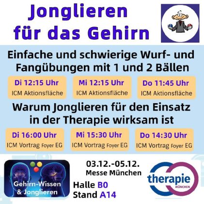 Warum Jonglieren in der Therapie wirksam ist – Täglich Kurzvortrag auf der Therapie-Messe in München 3.12.-5.12.2024