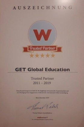 Die Arbeit von GET Global Education Tumulka ist mit einem ganz besonderen Award honoriert worden: Die renommierte internationale Bildungsberatung wurde für ihr Engagement im Bereich der internationalen Völkerverständigung ausgezeichnet. Verliehen wurde der Trusted Partner Award von Weltweiser ®. GET fühlt sich sehr geehrt, da diese Auszeichnung Beweis dafür ist, dass das Leitmotiv von GET – […]