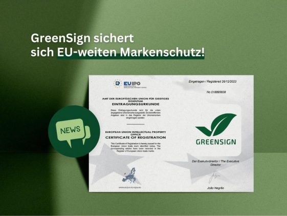 EU-Gewährleistungsmarken können seit 2017 in der europäischen Union eingetragen werden. Eine eingetragene EU-Gewährleistungsmarke gibt eine Garantie für Waren oder Dienstleistungen. Durch Kontrollen oder Überwachungen werden die zugesicherten Eigenschaften garantiert. Der Verbraucher kann das Prüfverfahren im Register der EUROPEAN UNION INTELLECTUAL PROPERTY OFFICE einsehen. Im Rahmen des Anmeldeverfahrens musste GreenSign nachweisen, welche Nachhaltigkeitskriterien abgefragt und geprüft […]