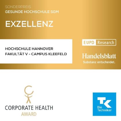 Die Hochschule Hannover (HsH) erlangt Exzellenzstatus beim Corporate Health Award 2022