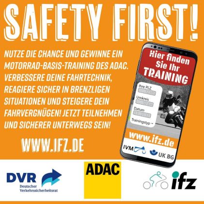 Das Motorradwetter meint es gut mit uns – der Sommer geht in die Verlängerung. Wer bislang die Teilnahme am nächsten Motorradtraining vor sich hergeschoben hat, sollte jetzt aktiv werden. Schnell und unkompliziert hilft das gemeinsame Online-Trainingsportal der Partner-Allianz bestehend aus ADAC, dem Deutschen Verkehrssicherheitsrat (DVR) und dem Institut für Zweiradsicherheit (ifz) bei der Suche. Und […]