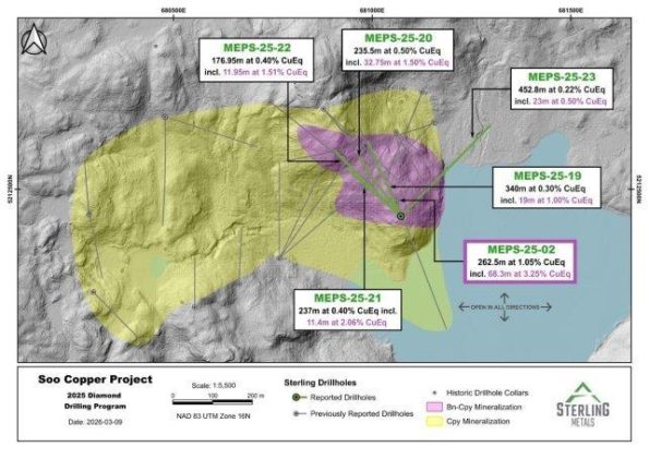 Sterling Metals Corp. (TSXV: SAG, OTCQB: SAGGF) („Sterling“ oder das „Unternehmen“) freut sich, die restlichen Analyseergebnisse seines erweiterten und abgeschlossenen Bohrprogramms 2025 auf dem Projekt Soo Copper („Soo Copper“ oder das „Projekt“) in der Nähe von Batchewana Bay, Ontario, bekannt zu geben. Die Ergebnisse von fünf weiteren Bohrlöchern haben die Ausdehnung der Kupfermineralisierung zusätzlich erweitert und gleichzeitig […]