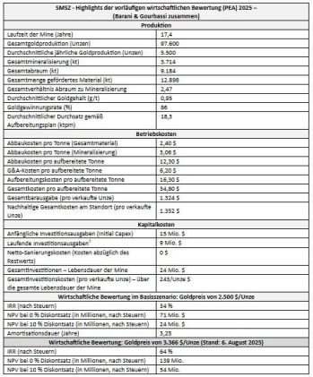 Desert Gold legt positive PEA für das SMSZ-Projekt mit einem Nachsteuer-NPV (10 %) von 24 Mio. USD und einer IRR von 34 % bei einem Goldpreis von 2.500 USD/Unze für die Lagerstätten Barani und Gourbassi in Mali vor