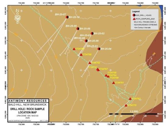 Highlights Erhaltene Analyseergebnisse Hochgradige Analyseergebnisse für die Bohrlöcher BH-25-03 und BH-25-04. Bohrloch BH-25-04 ergab 4,17 % Sb über 7,40 Meter in einer Tiefe von 106,6 bis 114,0 Metern einschließlich drei massiver Stibnit-Zonen mit jeweils 28,8 % Sb, 21,9 % Sb und 17,9 % Sb. Bohrloch BH-25-03 ergab 2,76 % Antimon (Sb) über 2,8 Meter in einer Tiefe von 78,2 bis 81,0 […]