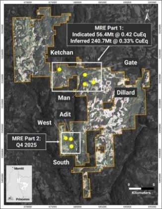 Kodiak Copper Corp. (das "Unternehmen" oder "Kodiak") (TSX-V: KDK, OTCQB: KDKCF, Frankfurt: 5DD1) meldet heute den ersten Teil seiner Erstschätzung der Mineralressourcen auf dem zu 100 % unternehmenseigenen Kupfer-Gold-Projekt MPD im Süden British Columbias, das vier von sieben mineralisierten Zonen umfasst. Höhepunkte – Beachtliche kupfer- und goldhaltige Erstschätzung der Mineralressourcen („MRE") für vier der sieben mineralisierten Zonen, […]
