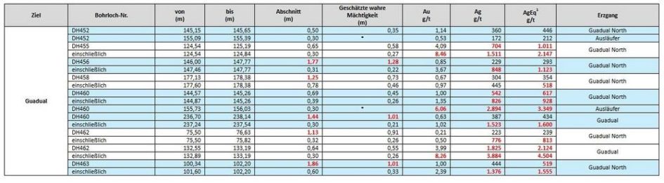 Outcrop Silver bestätigt beständig hochgradige und mächtigere Erzgangabschnitte bei Guadual North, einschließlich 1,86 Meter mit 519 g/t Silberäquivalent