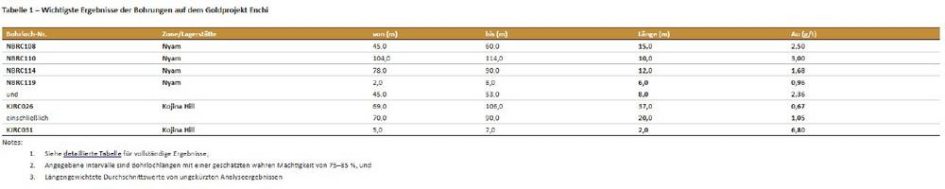 Bohrungen von Newcore Gold durchschneiden 2,50 g/t Gold auf 15,0 Meter und 3,00 g/t Gold auf 10,0 Meter auf dem Goldprojekt Enchi, Ghana