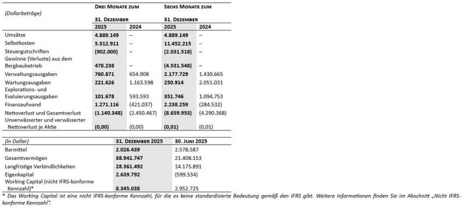 Abcourt Mines Inc. („Abcourt“ oder das „Unternehmen”) (TSX Venture: ABI) (OTCQB : ABMBF) gibt seine Finanzergebnisse für das zum 31. Dezember 2025 endende zweite Quartal bekannt. Alle in dieser Pressemitteilung genannten Finanzbeträge sind, sofern nicht anders angegeben, in kanadischen Dollar ausgewiesen. Das Geschäftsergebnis sowie der Lagebericht (Management Discussion & Analysis) sind auf SEDAR+ verfügbar. – Während des […]