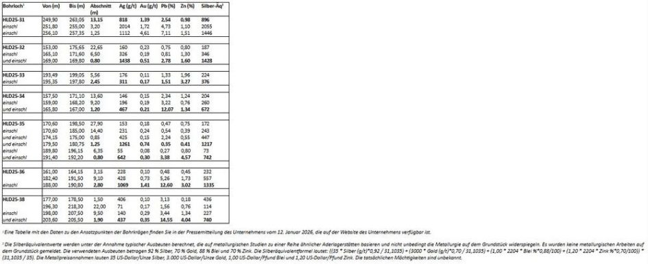 Höhepunkte 2025 und Ausblick für 2026 – Hochgradige Ergebnisse: Die Bohrungen bei Haldane ergaben mit 818 g/t Silber auf 13,15 m das beste Bohrergebnis in der Geschichte des Konzessionsgebiets (HLD25-31). – Zielerweiterung: Die Mineralisierung bei Main Fault wurde erfolgreich auf über 100 m entlang des Streichens und 150 m neigungsabwärts erweitert. – Programm 2026: Der Schwerpunkt des bis […]