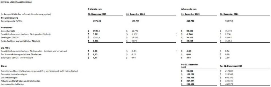 Polaris Renewable Energy gibt die Ergebnisse für das 4. Quartal und das Gesamtjahr 2025 bekannt