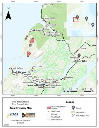. Wichtigste Ergebnisse Starke Kupfergehalte aus dem ersten Bohrprogramm, das im Herbst 2024 auf dem Kupferprojekt Sting in West-Neufundland absolviert wurde – VB24-001: 20,5 m mit 1,21 % Cu einschließlich 5,0 m mit 2,22 % Cu und 54,8 m mit 0,32 % Cu* – VB24-002: 78,0 m mit 0,24 % Cu einschließlich 9,0 m mit 0,76 % Cu – VB24-003: […]