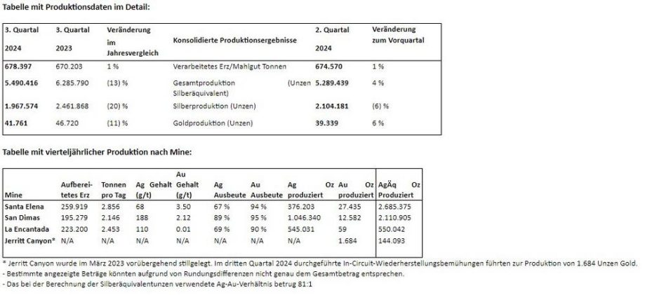 First Majestic produziert 5,5 Mio. Unzen AgÄq im 3. Quartal 2024 – bestehend aus 2,0 Mio. Unzen Silber und 41.761 Unzen Gold
