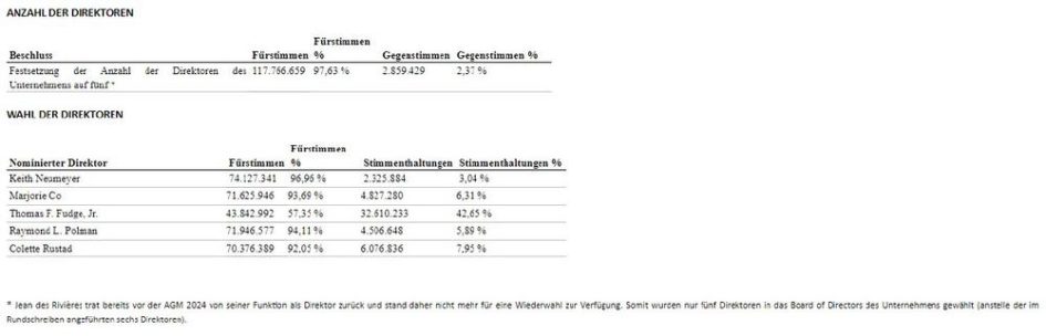 First Majestic Silver Corp. (NYSE:AG) (TSX:FR) (FWBMV) (das „Unternehmen“ oder „First Majestic“) freut sich, die Abstimmungsergebnisse seiner Jahreshauptversammlung der Aktionäre bekannt zu geben, die am Donnerstag, den 23. Mai 2024 in Vancouver (British Columbia) abgehalten wurde (die „AGM 2024”). Jeder der Punkte, über die im Rahmen der AGM 2024 abgestimmt wurde, ist im Rundschreiben des […]