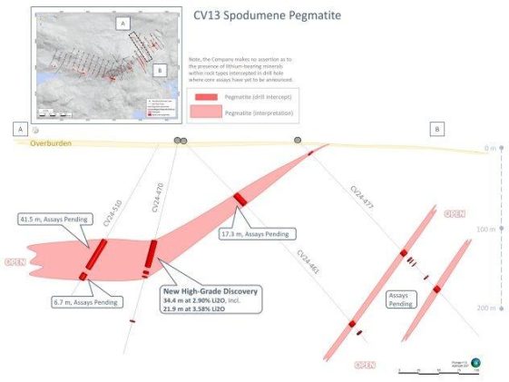Patriot Battery Metals – Neue hochgradige Zone bei CV13 im Projekt Corvette entdeckt: 34,4 m mit 2,90 % Li2O, einschließlich 21,9 m mit 3,58 % Li2O