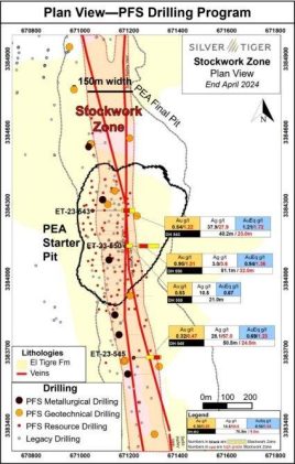Silver Tiger durchteuft 32,0 Meter mit 1,36 g/t Goldäquivalent innerhalb von 81,1 Metern mit 0,94 g/t Goldäquivalent in der Stockwork Zone