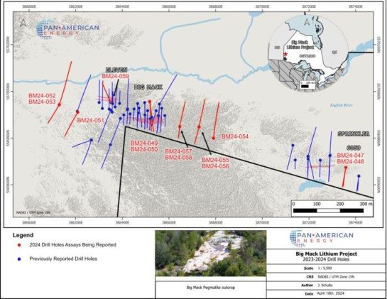 Pan American Energy Corp. (CSE: PNRG | OTC: PAANF | FWB: SS60) („Pan American“ oder das „Unternehmen“) freut sich, die letzten Analyseergebnisse aus 13 Bohrlöchern bekannt zu geben, die im Rahmen des Diamantbohrprogramms 2023/2024 auf dem Lithiumprojekt Big Mack („Konzessionsgebiet“) absolviert wurden. Das Projektgelände befindet sich rund 80 Kilometer nördlich der Stadt Kenora in der kanadischen […]