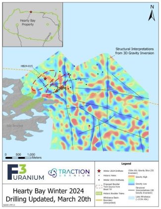 Traction Uranium Corp. (CSE: TRAC) (OTC: TRCTF) (FWB: Z1K) (das „Unternehmen“ oder „Traction“) gibt den Abschluss einer einzigen Schallbohrung auf dem Konzessionsgebiet Hearty Bay (das „Konzessionsgebiet“) sowie die vorzeitige Einstellung des Bohrprogramms aufgrund der sich verschlechternden Eisverhältnisse auf dem Lake Athabasca bekannt. Mithilfe eines raupenmontierten Schallbohrgerätes konnte man zum ersten Mal unter dem See entgegen der […]