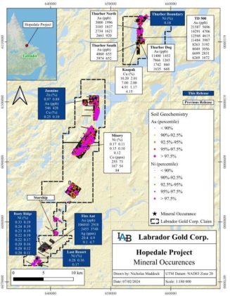– Jüngste außergewöhnliche Kupfer- und Goldergebnisse von Diamantbohrloch BBDD0045 bei der Entdeckung Bluebird haben die westliche hochgradige Kupfer-Gold-Zone mit einem herausragenden Abschnitt erweitert (siehe Querschnitt, Abbildung 1): o 61,8 m mit 2,3 % Cu und 0,4 g/t Au (2,8 % CuÄq*) ab 149,2 m (Bohrlochtiefe) – einschließlich 13,2 m mit 9,6% Cu und 1,51 g/t Au (11,1 % CuÄq*) ab 149,9 m – einschließlich 6,85 m […]