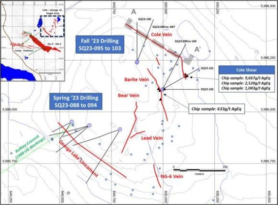 Equity meldet letzte Ergebnisse der Bohrungen auf dem Ziel Cole Lake, einschließlich 2,5 Meter mit 220g/t AgÄq in Bohrloch SQ23-099 und 2,6 Meter mit 223g/t AgÄq in Bohrloch SQ23-103, Projekt Silver Queen in BC